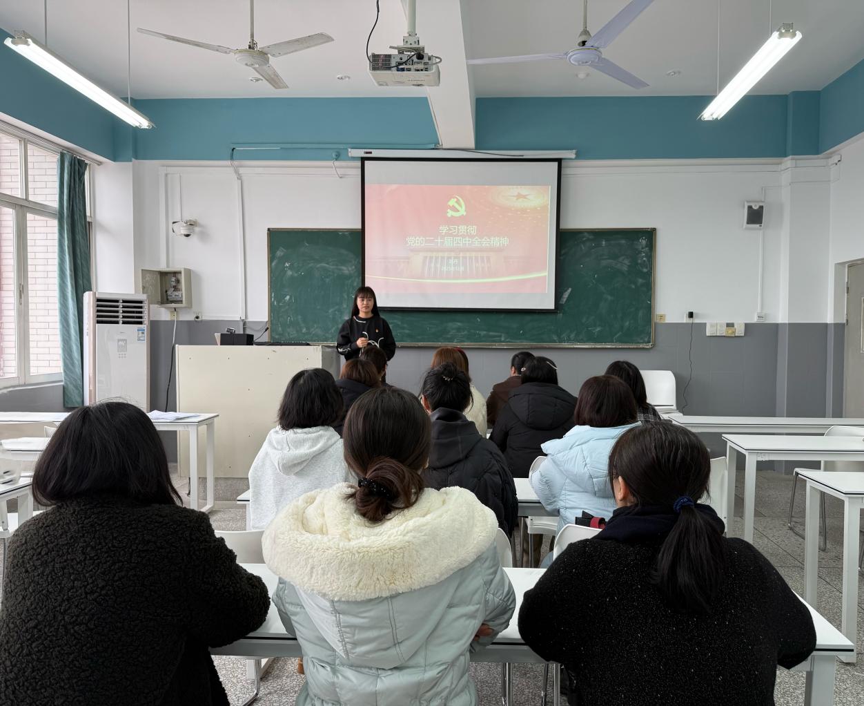 12月31日上午,学院第二党支部开展“学习贯彻党的二十届四中全会精神”主题党课。本次党课由支部副书记赵丹主讲,全体党员教师参加学习。