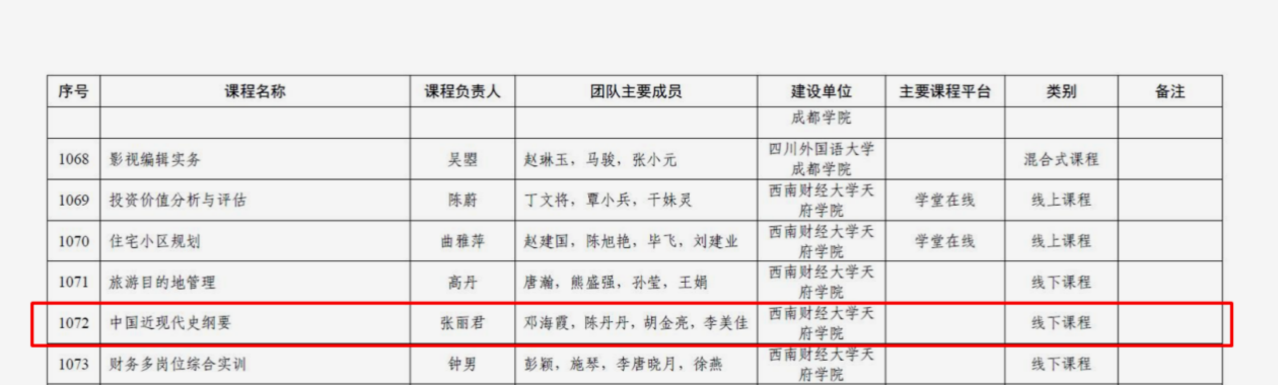 “中国近现代史纲要”课程被认定为四川省线下课程一流本科课程