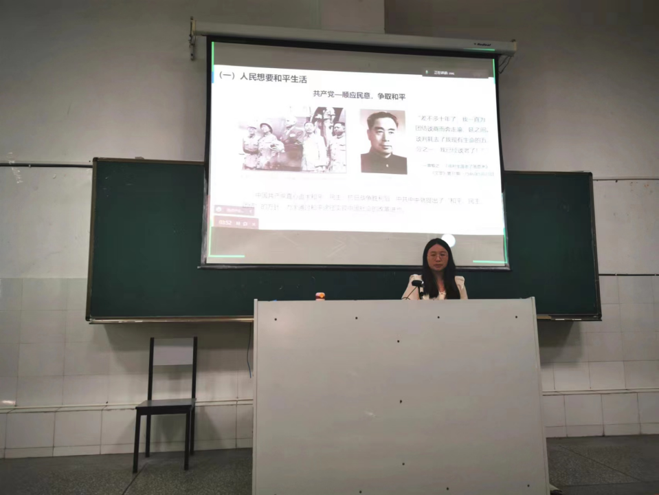 比赛环节,由初赛选拔的7位教师一一展示。各参赛教师选取所授课程的相关知识点,结合丰富的教学素材,运用多样的教学方式进行展示。王晓峰以中国式现代化为视角分析洋务运动的兴衰成败。张霞引用经典和图表详细讲解农业社会主义改造的原因和过程。李美佳以问题链方式、用对比的角度讲解民心向背为何是解放战争的决定性因素。刘洁用一个典型案例贯穿的方式讲解了实践的本质与基本结构。杨小丽结合现实多角度分析了对人口规模巨大的现代化的理解。杨燕结合不同案例探讨了人本特质为什么是意识与人工智能的区别。漆俊对农业社会主义改造的方式与现实启示进行了分析。