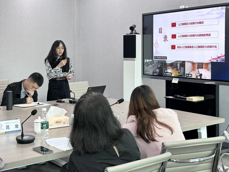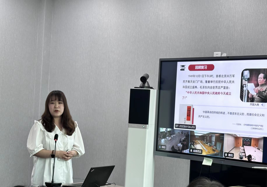 本次教学比赛复赛在第一轮初赛的基础上,共选出6位教师进行展示。展示环节,杨燕结合案例分析了意识与人工智能的区别。张霞引用经典和图表详细分析了农业社会主义改造的现状、原因和过程。付婧芳以农民阶级的“太平天国梦”为题,详细讲解了太平天国运动的过程及其失败的原因。刘洁用一个典型案例贯穿的方式讲解了实践的本质与基本结构。杨小丽结合现实多角度解码了人口规模巨大的现代化的特征。漆俊对农业社会主义改造的现实依据、历史道路和当代启示进行了分析。