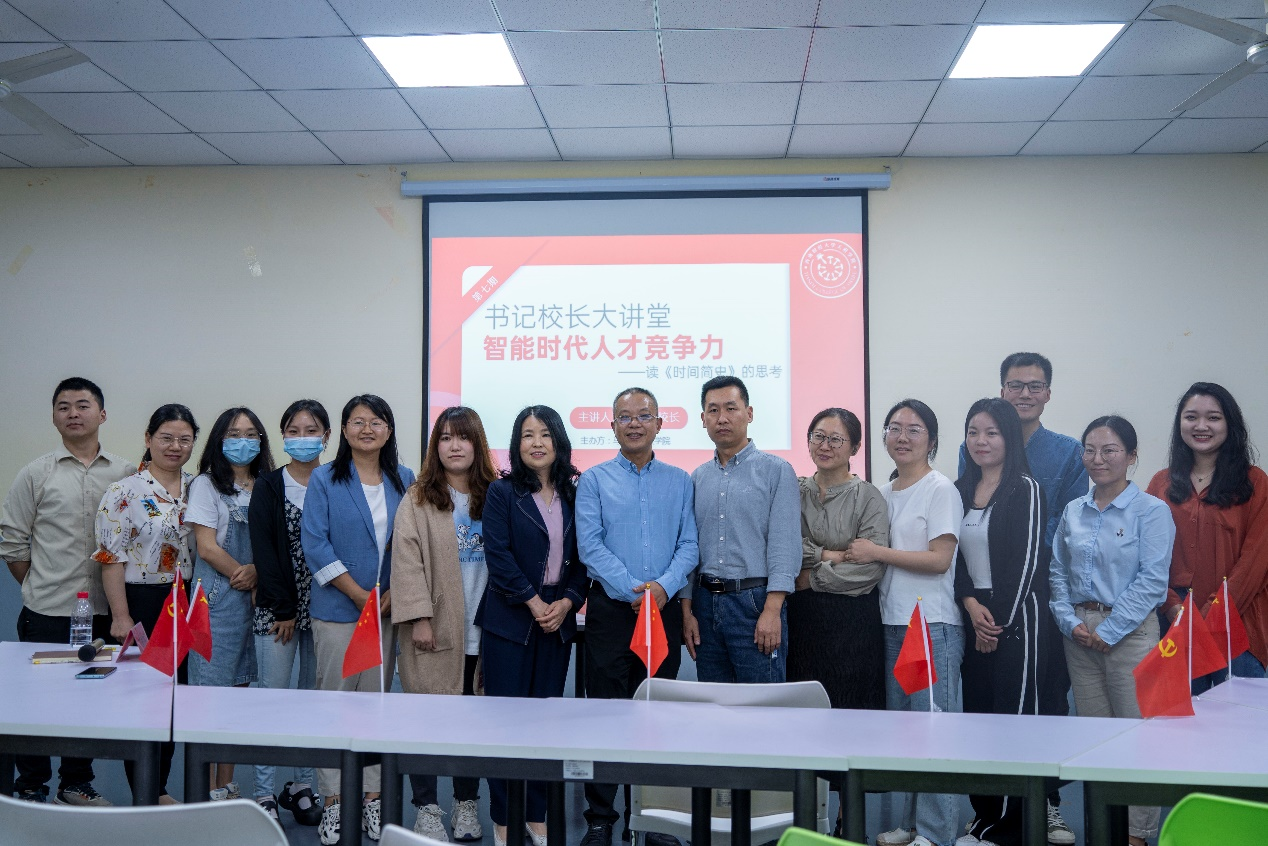 5月24日晚,由马克思主义学院主办、马克思主义研究学会承办的第七期书记校长大讲堂在绵阳校区1106教室开展。此次大讲堂的主题是“智能时代人才竞争——读《时间简史》的思考”,由学校副校长刘强主讲,马克思主义学院院长丁灵芝主持,数学教研中心主任张现强老师、马克思主义学院全体教师以及六十余名学生参与学习。