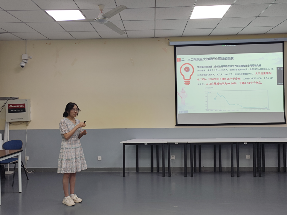 本次教学比赛培训在第一期的基础上,六位参赛教师分别进行了教学展示。颉睿以“初心未改,人民至上——中国共产党的根本价值理念”为题,分析了坚持人民至上的话语叙事逻辑。刘洁以中国高铁的建设为例,讲解了实践的本质。胡金亮详细分析了美国对华“脱钩断链”的成因、影响以及中国的应对之策。罗颖以对比方式、用生动案例讲解了理想信念的重要性以及如何树立正确的理想信念。王晓峰从中国式现代化的四重逻辑对洋务运动进行分析。杨小丽结合现实多角度解码了人口规模巨大的现代化。