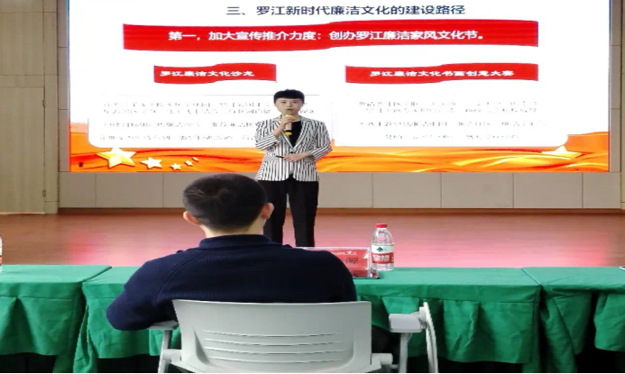 自今年10月开赛以来,学院积极宣传、动员组织、精心准备,共派出5名教师代表参赛。其中,颜莎莎以“弘扬罗江范氏家风 建设罗江廉洁文化”为题,从区域文化特色为切入点,讲述如何加强廉洁文化建设。唐蕾以“绿色罗江 大美德阳”为题,讲述了罗江统筹绿色发展,推进生态环境建设。