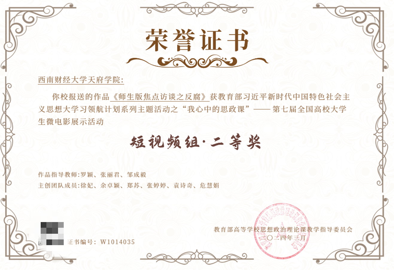 近期,由教育部高校思想政治理论课教学指导委员会主办的习近平新时代中国特色社会主义思想大学习领航计划主题教育活动“我心中的思政课”——第七届全国高校大学生微电影展示活动和“新思想引领新征程·新青年建功新时代”——第七届全国高校大学生讲思政课公开课展示活动,先后数月经大学生评委初评、专家评委复评以及统计奖项三个阶段,最终公布了获奖名单。马克思主义学院报送的作品《师生版焦点访谈之反腐》荣获微电影展示活动全国二等奖,《星星之火,终可燎“川”》荣获大学生讲思政课公开课展示活动全国三等奖,《选择》荣获微电影展示活动四川省二等奖。
