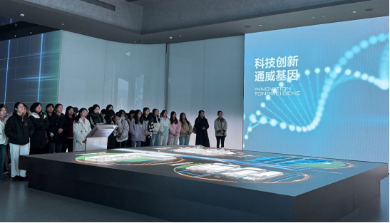 通威光伏科技馆作为集“产、学、研、用”于一体的创新展示平台,全面展现了中国光伏产业从无到有、从弱到强、最终引领世界的奋斗历程,为思政课教学提供了鲜活的实践案例。师生们依次参观展现光伏奋斗史与技术演进历程的展厅,观摩从新能源数字沙盘到“渔光一体”的具体实践,并在“智慧工厂”通过实时数据,具象化感知智能制造。参观结束后,师生们结合思政课程相关内容展开深入交流,引导学生加深对“科技自立自强”“新发展理念”等课程内容的理解。