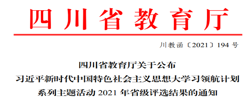 今年是庆祝中国共产党成立 100 周年。为深入贯彻落实习近平总书记关于深化思想政治理论课改革创新和加强“四史”教育的重要指示批示精神,全面落实习近平总书记在党史学习教育动员大会上的重要讲话精神,四川省教育厅于4-5月组织了“关于开展习近平新时代中国特色社会主义思想大学习领航计划相关主题活动”。马克思主义学院积极组织,师生合力提交了学...