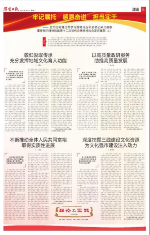 院长丁灵芝参加绵阳市社科理论界座谈会并在《绵阳日报》发表理论文章