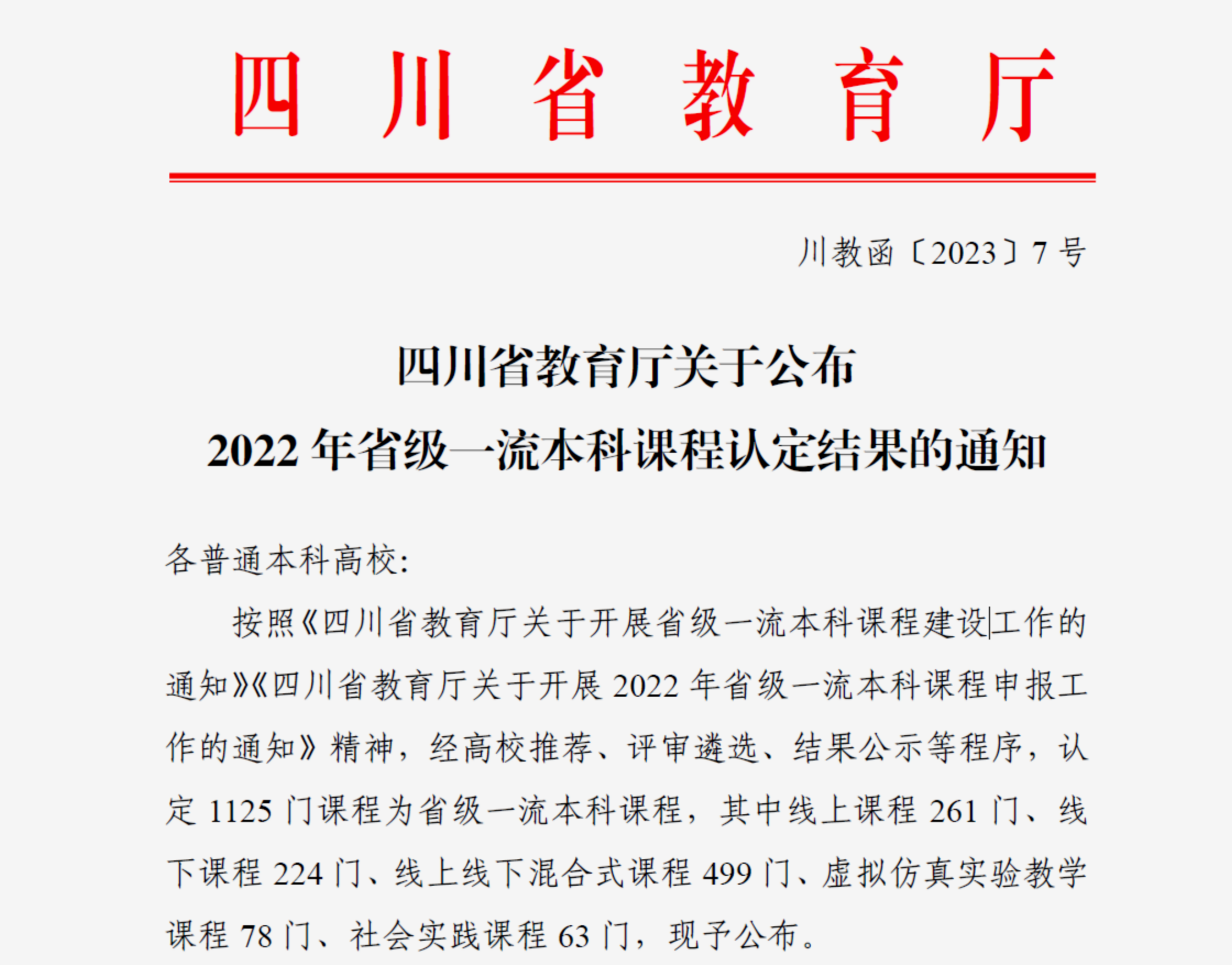 根据《四川省教育厅关于公布2022 年省级一流本科课程认定结果的通知》(川教函〔2023〕7 号),马克思主义学院申报的“中国近现代史纲要”课程被认定为四川省线下课程一流本科课程。此次申报工作,在学校研究与发展处的组织下,马克思主义学院积极响应,组成教师团队,开展教学研究和资料准备,群策群力,共同完成此项工作。 ?四川省教育厅关于2022年...